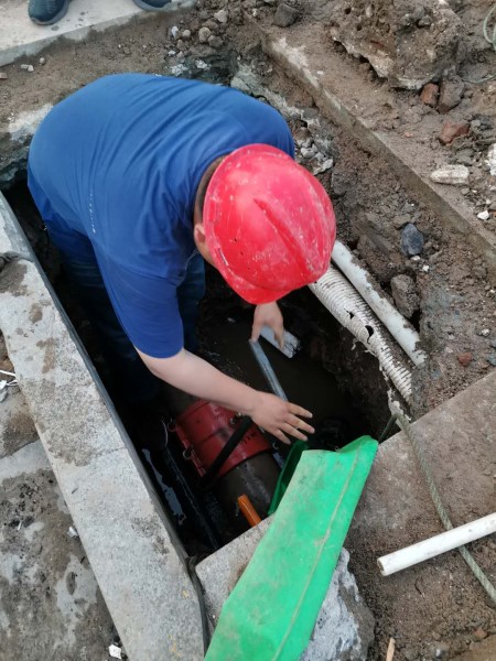 近日,楊公路一處公廁管理單位致電公司反映,其所管理的公廁突然無水。接報后,管網部韓經理和維修員張波立即前往查看。韓經理有多年豐富的維修經驗,對地下管線比較了解,經現(xiàn)場勘察,楊公路公廁原用水是從黃河灘被廢除的供水主管網接入的,由于主管網被斷水導致無水使用。若想重新接入自來水,可以選擇從公園一號頂管重新拉入供水管網,但此舉必然造成時間和費用等成本的增加。為盡快解決問題,韓經理和維修員又對附近的管網再進行查找,終于在宿遷學院附近找到一條PVC160主供水管網,從此管道破口接入支管道,雖然距離較長、成本較高,但施工速度會相對較快。在向公司匯報后,管網部立即著手施工,經過一系列緊鑼密鼓的安裝,一條長300米的PE63支管道僅僅用2天時間就順利完成,相較正常施工時間縮短了一半左右。