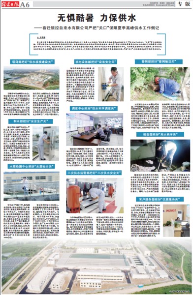 炎炎高溫季,滴滴清泉水,生命之源,不可或缺。確保一年一度的夏季高峰供水安全是供水企業(yè)一項艱巨的任務(wù)。今年夏季高溫到來前,宿遷銀控自來水有限公司未雨綢繆,制定多項措施,確保圓滿完成今夏高峰供水任務(wù)。