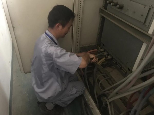 規(guī)范作業(yè),快速搶修,保證生產(chǎn)安全。狹小悶熱的配電室內(nèi),聯(lián)合水務(wù)荊州項(xiàng)目公司機(jī)電主管王運(yùn)虎心無(wú)旁騖,正專心搶修設(shè)備。咨詢故障現(xiàn)象,懸掛安全警示牌,切斷電源,確認(rèn)用電器放電完成,清理現(xiàn)場(chǎng)雜物,畫出檢修區(qū)域,利用萬(wàn)用表、鉗形表及兆歐表等專業(yè)工具檢修負(fù)載電纜及電機(jī)是否完好……一系列流程王主管快速而嫻熟的逐項(xiàng)進(jìn)行,絲毫沒有因?yàn)榭崾钛谉嵊绊憮屝捱M(jìn)度。