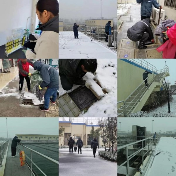 12月29日凌晨開(kāi)始,風(fēng)雪姍姍而來(lái),鵝毛大雪伴著疾馳的寒風(fēng)在空中飛舞,至白天終于肆虐。風(fēng)刮在臉上像刀子一樣,但風(fēng)雪中,供水人勇于逆行,供水工作的每一個(gè)角落,都是迎風(fēng)冒雪的堅(jiān)強(qiáng)身影。一大早,二水廠兩位女水檢員像往常一樣開(kāi)始了廠區(qū)采集水樣工作,全副武裝,騎上電瓶三輪車,艱難前行,每到一處采水點(diǎn),像往常一樣認(rèn)真。一至四期廠區(qū),池體濕滑,小心翼翼在風(fēng)雪中奮戰(zhàn)兩個(gè)多小時(shí),也要一絲不茍把水樣采回去,做好日檢,確保出廠水安全。生產(chǎn)人員每小時(shí)一次的巡檢,不因風(fēng)雪受阻。機(jī)電人員不放心設(shè)備,于風(fēng)雪中穿梭于廠區(qū)、各個(gè)設(shè)備間;管網(wǎng)人員、抄收人員不懼風(fēng)雪,不厭其煩,對(duì)水表箱的保暖檢查了一遍又一遍,他們說(shuō),我們凍感冒了吃點(diǎn)藥就好了,可是水表要凍壞了,老百姓就沒(méi)水用了,這就是全體聯(lián)合水務(wù)供水人的心聲。為弘揚(yáng)這種精神,也為留下一個(gè)個(gè)感人的瞬間,同時(shí)號(hào)召老百姓一起投入抗寒戰(zhàn)斗,保護(hù)好自家自來(lái)水設(shè)施,更為展示我們的充分準(zhǔn)備和堅(jiān)定決心,讓老百姓放心,公司宣傳人員一頭扎進(jìn)風(fēng)雪中,跟拍采風(fēng)。