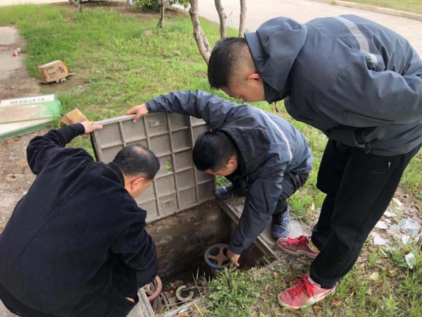 (圖2:工作人員現(xiàn)場(chǎng)實(shí)地排查水表等設(shè)施)
