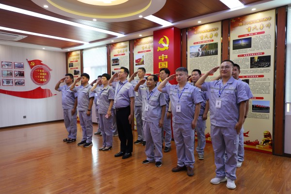 (圖3:參觀公司黨建活動(dòng)室,集體向黨旗行軍禮)