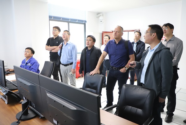 代表團(tuán)現(xiàn)場參觀了公司二水廠五期工程建設(shè)現(xiàn)場,詳細(xì)了解了工程建設(shè)的重要意義,以及水廠建設(shè)、運(yùn)行維護(hù)等方面的情況。在隨后的參觀過程中,雙方圍繞供水安全、漏損控制、水處理工藝、出水水質(zhì)等情況進(jìn)行探討交流。在調(diào)度中心,聯(lián)合水務(wù)宿遷公司副總經(jīng)理趙軍向代表團(tuán)介紹了公司智慧水務(wù)建設(shè)情況,并通過大屏動態(tài)演示,直觀展示公司實時動態(tài)監(jiān)測、GIS系統(tǒng)運(yùn)用、DMA分區(qū)計量等智慧水務(wù)應(yīng)用成果,代表團(tuán)對公司在水務(wù)領(lǐng)域取得的卓越成就給予高度評價。