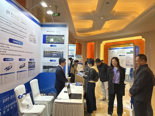 此外,聯(lián)合水務(wù)集團(tuán)上海博瑞思環(huán)境科技有限公司攜“水環(huán)境智慧管理無(wú)人船”亮相本次大會(huì)技術(shù)成果交流展區(qū),成為本次年會(huì)的一大亮點(diǎn)。這款水環(huán)境智慧管理無(wú)人船采用新能源無(wú)人船為載體,融合了先進(jìn)的水環(huán)境智慧管理系統(tǒng),全方位展示了聯(lián)合水務(wù)以創(chuàng)新科技賦能高質(zhì)量發(fā)展的前沿成果。展臺(tái)前,咨詢與交流的嘉賓絡(luò)繹不絕,眾多行業(yè)專家與水司代表對(duì)無(wú)人船在水環(huán)境管理方面的智能高效應(yīng)用表現(xiàn)出濃厚興趣,現(xiàn)場(chǎng)互動(dòng)熱烈,合作探討深入。