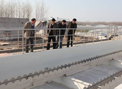 圖一說(shuō)明:葛書(shū)龍局長(zhǎng)視察第二水廠沉淀池