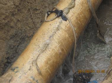 值班人員迅速趕到現(xiàn)場查看,發(fā)現(xiàn)漏水點正好處于DN300管線上,漏水量較大。由于該管線是連接南開發(fā)區(qū)的主管線,如果停水維修將給沿線用戶帶來較大影響,管網(wǎng)部馬上把情況向給公司匯報,公司領(lǐng)導(dǎo)立即趕赴現(xiàn)場指揮工作,并決定先挖掘漏水點再確定維修方案。經(jīng)過緊張的挖掘,破損的管道終于呈現(xiàn),原來是管道中間爆裂了