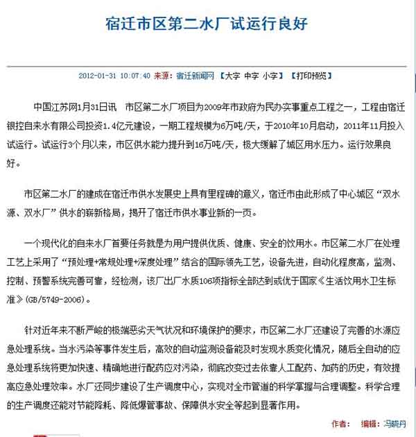�ڶ�ˮ�S��(j��ng)�^(gu��)�o��ʩ������2011��11��Ͷ��ԇ�\(y��n)�У��\(y��n)���ԁ�(l��i)�����Sˮ�|(zh��)��ȫ���ϡ��������ˮ�l(w��i)����(bi��o)��(zh��n)����GB5749-2006�������(l��i)����(sh��)�M(m��n)���O(sh��)Ӌ(j��)Ҫ����Ч�������Ѕ^(q��)�Ĺ�ˮ��������(du��)�ˣ��ٶ����������K���W(w��ng)�������P(gu��n)ע����(b��o)����������(b��o)��ȫ�ģ�