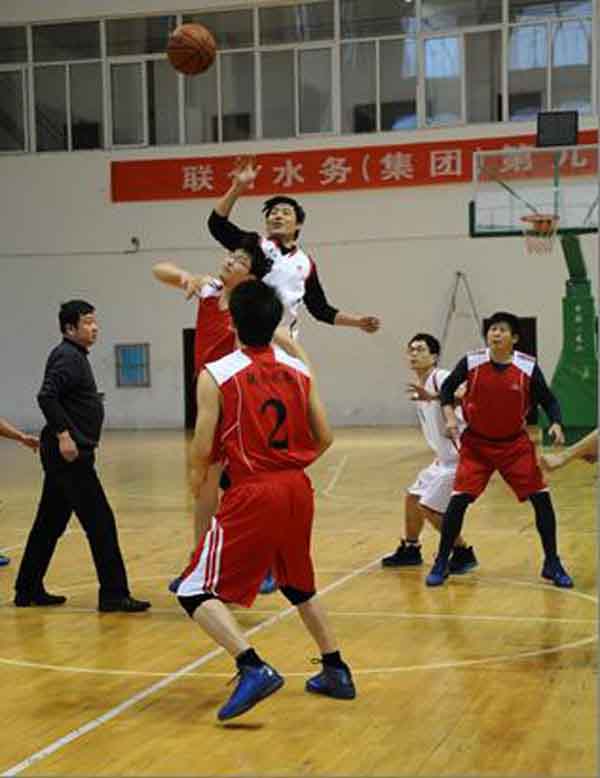 為迎接新一年的到來(lái),不斷增強(qiáng)擴(kuò)大員工的團(tuán)隊(duì)精神,有力促進(jìn)各項(xiàng)目公司之間的友誼與協(xié)作,2013年2月5日上午,聯(lián)合水務(wù)(集團(tuán))第九屆春節(jié)聯(lián)歡籃球友誼賽在宿遷市體育運(yùn)動(dòng)學(xué)?;@球場(chǎng)內(nèi)拉開(kāi)帷幕。此次比賽共有兩場(chǎng),分別是宿遷銀控自來(lái)水有限公司籃球隊(duì)對(duì)咸寧聯(lián)合水務(wù)有限公司籃球隊(duì);聯(lián)合水務(wù)(集團(tuán))自來(lái)水項(xiàng)目籃球聯(lián)隊(duì)對(duì)聯(lián)合水務(wù)(集團(tuán))污水項(xiàng)目籃球聯(lián)隊(duì)。