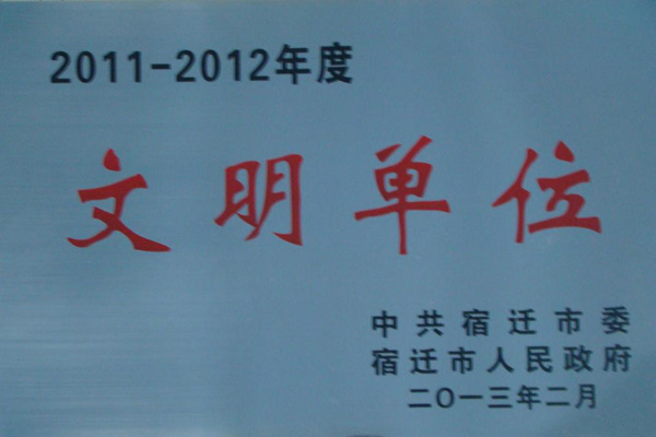 (圖:2011-2012年度宿遷市文明單位榮譽(yù)牌)