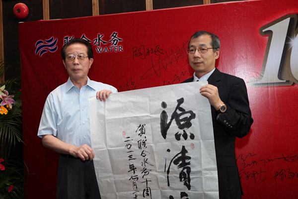 十年風(fēng)雨滄桑,十年光輝榮耀!2013年7月20日,聯(lián)合水務(wù)集團(tuán)創(chuàng)立十周年慶典儀式在美麗的黃浦江畔隆重舉行。上海市第十屆人大環(huán)資委員會(huì)主任委員、上海市水資源保護(hù)基金會(huì)常務(wù)副理事長(zhǎng)關(guān)壯民先生和世界銀行所屬國(guó)際金融公司中國(guó)和蒙古區(qū)首席代表趙炫贊先生等嘉賓出席,與來(lái)自聯(lián)合水務(wù)集團(tuán)總部、六省七市十一個(gè)項(xiàng)目公司的高管團(tuán)隊(duì)成員共同見證聯(lián)合水務(wù)跨越十年的發(fā)展之路。