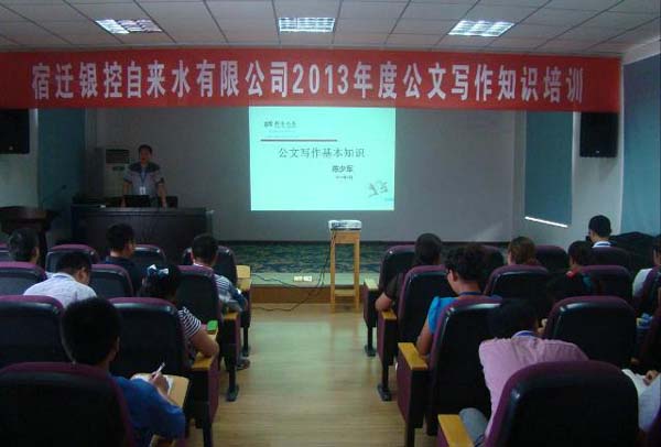 為了提高公司員工對于公文寫作的認(rèn)識;促進(jìn)公司對外發(fā)文的規(guī)范性,宿遷銀控自來水有限公司于2013年7月25日下午舉辦公文寫作知識培訓(xùn),公司副總經(jīng)理陳少軍主講,各部門共40人參與培訓(xùn)。