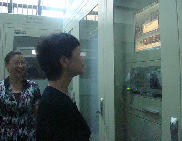 許副省長一行在夏總的陪同下參觀了駱馬湖泵站。許副省長詢問了取水、制水以及水質化驗流程,重點參觀了泵站內部的環(huán)保在線監(jiān)控系統。在仔細觀看了各個監(jiān)控數據點后,許省長表示:用水安全關系民生,水源的水質尤其重要,一旦源頭出問題,將影響到千家萬戶,宿遷銀控自來水有限公司采用環(huán)保在線監(jiān)控系統監(jiān)測手段,監(jiān)測數據可以及時反映水源地水質情況,是個不錯的舉措。