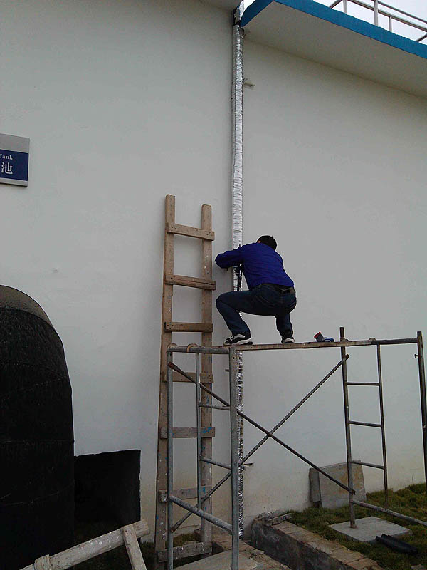 耿車污水處理廠室外有數(shù)量眾多的自來水管、中水管、沖洗水管、加藥管等,根據(jù)以往經(jīng)驗,這種裸露在室外的管道冬季易上凍。為了不影響正常生產(chǎn),廠里組織全體員工在入冬之前進行管道保溫施工。