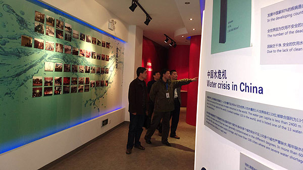 (圖:谷書(shū)記一行參觀水文化展示館)