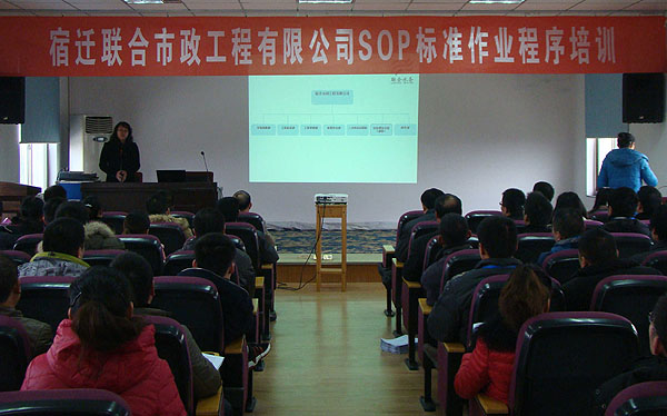2013年12月17日,宿遷聯(lián)合市政工程有限公司SOP標(biāo)準(zhǔn)作業(yè)程序培訓(xùn)于公司三樓會議室順利舉行,此次培訓(xùn)由總部人力資源部總監(jiān)楊麗霞擔(dān)任主講,薪資福利主管王玨協(xié)助,公司管委會成員、宿遷聯(lián)合市政工程有限公司全體員工以及宿遷銀控自來水有限公司部分涉及新流程運(yùn)行的員工共 60人參加了此次培訓(xùn)。
