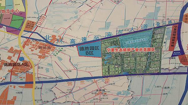 寧夏生態(tài)紡織產(chǎn)業(yè)示范園區(qū)是根據(jù)國家發(fā)改委正式批準(zhǔn)的《寧夏銀川承接產(chǎn)業(yè)轉(zhuǎn)移(生態(tài)紡織)示范區(qū)實施方案》而成立,這是國家發(fā)改委在全國范圍內(nèi)批準(zhǔn)建立的第一個紡織產(chǎn)業(yè)轉(zhuǎn)移示范園區(qū),該示范區(qū)還被納入《國家西部大開發(fā)“十二五”發(fā)展規(guī)劃》和《呼包銀榆重點經(jīng)濟(jì)區(qū)發(fā)展規(guī)劃》。作為示范區(qū)的核心產(chǎn)業(yè)園區(qū),該園區(qū)被寧夏自治區(qū)政府確定為 “寧夏二號、銀川一號”工程。園區(qū)位于銀川市賀蘭縣縣城以東約10公里處,規(guī)劃總面積30平方公里。園區(qū)將打造從紡織新材料到色紡、色織、服裝、家紡、裝飾、物流等產(chǎn)業(yè)一體化、產(chǎn)業(yè)鏈完整的生態(tài)紡織體系。