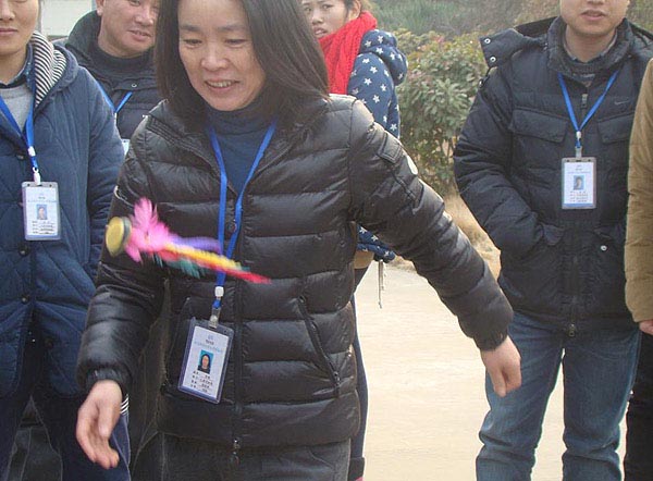 人事行政部吳銘經(jīng)理的排名在比賽后段,上場時也是一副心里沒底的模樣,不見她信心十足,大家忍著笑,屏息靜氣,看她如何將毽子踢到九霄云外,或砸中路人甲乙。