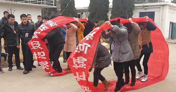 先打破僵局的是小夏總和吳銘經(jīng)理這一組,他們配合不錯,健步如飛走到終點只用了不到13秒,這下,大家發(fā)現(xiàn),關(guān)鍵其實是在后面那一位身上,前面一位盡管放開跑,后面只要緊緊跟上,不讓呼啦圈受力就不會斷開了。于是,剩下的幾組有了驚人表現(xiàn),全部采取女在前、男在后的方式,用“撒丫就跑”的速度,一對比一對跑得快,最終郁莉經(jīng)理和宋衛(wèi)偉兩個僅7秒多就跑完全程,大家樂壞了,這對組合完全是“百米賽跑”的速度呀,真應(yīng)該在呼啦圈的同時設(shè)置跨欄障礙。
