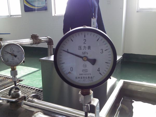 目前宿遷公司高層供水高壓達到0.8MPa,水表檢定中心按照檢定規(guī)程在耐壓試驗臺上對水表進行密封性檢查,確保在最大允許壓力1MPa下持續(xù)1分鐘,水表無滲漏現(xiàn)象。