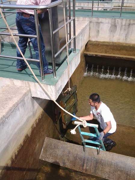 (圖2:把閘門(mén)板拖拽出砂濾池)