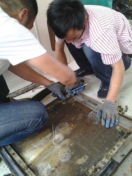 同時(shí),5月29日上午,機(jī)電設(shè)備部對(duì)二水廠2號(hào)砂濾池的閘門(mén)板進(jìn)行了維修。之前制水部發(fā)現(xiàn)2號(hào)閘門(mén)板有漏水現(xiàn)象,經(jīng)維修人員拆卸后發(fā)現(xiàn)閘門(mén)板的邊緣橡膠皮墊長(zhǎng)時(shí)間的開(kāi)啟摩擦致局部磨損,從而導(dǎo)致密封不嚴(yán)。經(jīng)過(guò)更換橡膠皮墊、禁錮、安裝,經(jīng)測(cè)試后漏水明顯減小,密封效果達(dá)到預(yù)期目標(biāo)、。