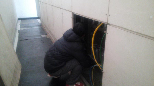 (圖:工作人員對(duì)電容補(bǔ)償內(nèi)發(fā)出的異常聲音進(jìn)行檢查)