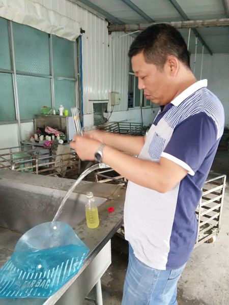 (圖1:我中心工作人員用試劑檢測水質(zhì))