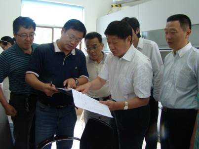 圖2:領導專家們認真查看水質(zhì)檢測數(shù)據(jù)報表