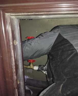 八點(diǎn)四十分,“蘭亭御城”小區(qū)工地。搶修人員正在每棟小高層的樓層排查凍壞水表。該小區(qū)由于水表井設(shè)計(jì)不科學(xué),水表井從一樓到頂樓是貫通的,導(dǎo)致冷風(fēng)流通凍壞水表,搶修人員正每層查看,發(fā)現(xiàn)水表凍壞的,全部現(xiàn)場(chǎng)更換。在這里,夏總、曾總親自從狹小的管道井探身進(jìn)去查看,發(fā)現(xiàn)管道井不僅很窄不便操作,而且在操作過程中有很大安全隱患,搶修人員稍有不慎,便有可能墜入管道井造成人身傷害。夏總、曾總特別要求搶修人員注意安全問題,兩人一組,一人搶修,一人在旁邊做好保護(hù)工作。據(jù)不完全統(tǒng)計(jì),該小區(qū)已發(fā)現(xiàn)的凍壞的水表約有130塊,隨著排查深入,這個(gè)數(shù)字還會(huì)不斷增大。隨后,夏總一行又對(duì)該小區(qū)多層住宅水表井進(jìn)行檢查,發(fā)現(xiàn)部分水表井內(nèi)埋沙深度不夠,便要求工程公司要從安裝源頭把關(guān),管網(wǎng)部在每年水表保護(hù)巡查過程中要注意及時(shí)保證沙層厚度,共同做好水表防凍工作。