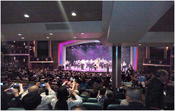 20日的清晨旅行正式開始,豪華的“皇家水手號游輪”承載大家的期盼一路乘風(fēng)破浪駛向海洋彼岸。船上健全的娛樂設(shè)施、美麗的海上風(fēng)景讓船上來自各個國家的游客很快融為一體,一路載歌載舞慶祝此次行程。