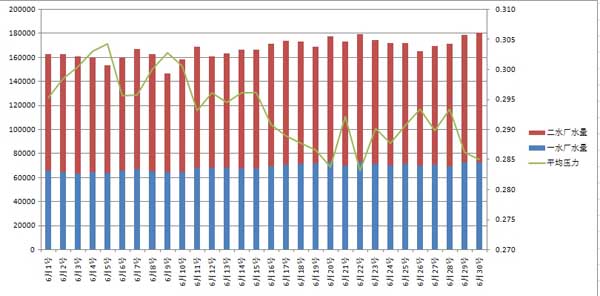 (圖:6月份用量和管網(wǎng)壓力關(guān)系圖)