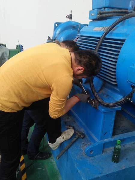 三、二水廠送水泵房四臺長沙水泵電機端沒有同心度調整裝置,給機組同心度調整帶來一定的困難。為了能保證水泵和電機水平同心度,減少連軸裝置配件損壞,降低故障的發(fā)生,機電設備部決定對長沙泵同心度調整裝置進行技術改造安裝。此次二水廠4臺長沙泵同心度調整裝置安裝,減少了機組故障發(fā)生,保證了機組運行的穩(wěn)定性。