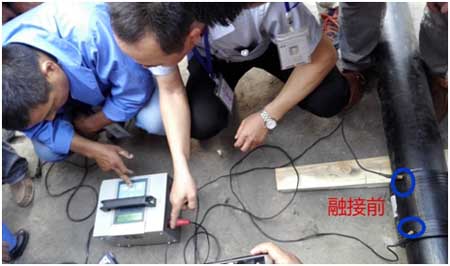 (圖2:工程公司人員配合廠家技術(shù)員做融接前準(zhǔn)備工作)