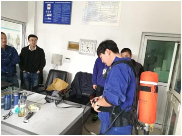 培訓(xùn)首先介紹了正壓式空氣呼吸器的常規(guī)檢查和使用的注意要點(diǎn),其次讓員工實(shí)例穿戴,由安全工程師馬園指出存在的問(wèn)題和不足,共同學(xué)習(xí)以改進(jìn);隨后又對(duì)液氯搶修工具進(jìn)行了講解和實(shí)操,讓參加培訓(xùn)的員工基本掌握工具的使用。