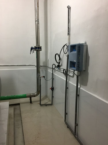 眾所周知,從自來水廠出來的水都是經(jīng)過一道道嚴(yán)格的處理程序并檢測合格后送出的,而且多數(shù)水廠對大部分參數(shù)的控制上都遠(yuǎn)遠(yuǎn)嚴(yán)于國標(biāo)的要求,然而在水送出到城市管網(wǎng)中后。水質(zhì)的保障主要依靠水中的游離氯來控制,游離氯主要控制對象就是大腸桿菌數(shù)量,其中最難把控的部分就是管網(wǎng)最后”一公里”的管路,由于輸送水的管道過長,以及用水量不均衡的影響,就會導(dǎo)致部分管路中的余氯差異過大,而余氯減少就可能導(dǎo)致大腸桿菌數(shù)量增加,給居民水質(zhì)安全帶來隱患。因此,宿遷公司對二次供水在該部分管道處增加了在線余氯檢測裝置,可以實時監(jiān)視該部分管網(wǎng)的余氯。