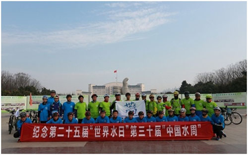 3月19日,宿遷銀控自來水有限公司會同宿遷市電視臺、宿遷市環(huán)保協(xié)會、宿遷市自行車運(yùn)動協(xié)會共同組織了“世界水日”自行車騎行宣傳活動。40名騎行愛好者身著印有“世界水日,節(jié)約水資源”的統(tǒng)一服裝,上午8:00準(zhǔn)時從市政府廣場出發(fā),一路浩浩蕩蕩沿宿遷古黃河風(fēng)光帶和駱馬湖風(fēng)景區(qū)騎行,印有“世界水日”的小旗子隨風(fēng)飄揚(yáng),場面蔚為壯觀。上午10:10,騎行志愿者們來到公司第二水廠參觀宿遷市水文化展示館和制水工藝流程。片刻休息后,騎行志愿者們來到水展館參觀。各展項(xiàng)用淺顯易懂的技術(shù)手段將宿遷市自來水沿革從歷史淵源到“現(xiàn)世今生”進(jìn)行了全面呈現(xiàn),具有非常高的科普性、教育性、可觀賞性,參觀結(jié)束后,大家紛紛嘖嘖稱贊,表示拓寬了視野,了解到了很多關(guān)于水的以前所未知的知識。接下來,在制水部人員的帶領(lǐng)下,志愿者們來到清水池參觀制水工藝流程,能親臨現(xiàn)場觀看與日常生活息息相關(guān)的自來水的制作過程,大家顯得非常興奮。隨著一道道工序的講解,大家對嚴(yán)格的工藝流程表示很放心,同時都表示現(xiàn)在才知道自來水來之不易,今后一定要節(jié)約用水。