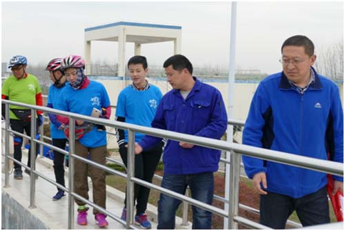 (圖2:騎行志愿者們現(xiàn)場參觀制水工藝)