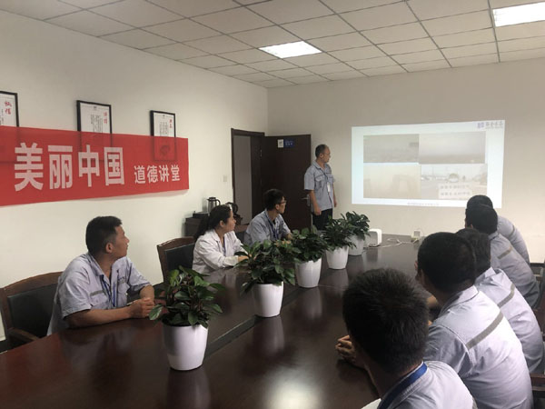 道德講堂活動(dòng)分為解讀現(xiàn)狀、學(xué)習(xí)模范、立足自我三個(gè)環(huán)節(jié)。首先,公司行政管理部經(jīng)理孫政偉提綱挈領(lǐng)式的給在場人員讀《中國環(huán)境質(zhì)量綜合評價(jià)報(bào)2017》,借助客觀數(shù)據(jù)幫助員工了解過去一年來我國的環(huán)境現(xiàn)狀。