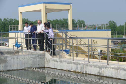 4月24日下午,以色列駐滬總領(lǐng)事館總領(lǐng)事普若璞先生、副總領(lǐng)事章納達(dá)先生、副領(lǐng)事古柏漫先生等一行6人在宿遷市外事辦領(lǐng)導(dǎo)張巖主任陪同下,來到宿遷銀控自來水有限公司第二水廠參觀考察,公司總經(jīng)理曾真、總經(jīng)理助理趙軍給予了熱情接待。