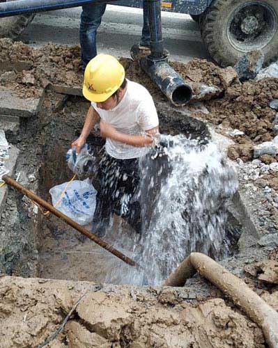 稽查加大巡查力度,對轄區(qū)所有消防栓制定巡查計劃,對于有拆遷、道路施工、項目建設(shè)等增加巡查次數(shù)。6月19日下午,洋河鎮(zhèn)洋曹路旁一企業(yè)施工時將我司一道DN400主管道挖壞,漏損十分嚴重,下游一整個屠園鄉(xiāng)面臨停水,情況十分緊急。部門相關(guān)人員立即就位,一路停水、一路備料、一路現(xiàn)場指導(dǎo)開挖,同時通知屠園鄉(xiāng)維修員、抄收員、洋河、宿遷大廳值班員停水事宜,現(xiàn)場分工明確,忙而不亂,最終在不到3小時完成搶修并恢復(fù)供水。