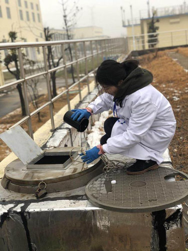 (圖2:節(jié)日期間,水質檢測人員冒著嚴寒加密取水化驗)