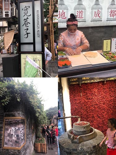 第一站——四川成都。成都是四川省的省會,自古物產(chǎn)富饒、風景獨特,素有“天府之國”的美稱,由于近幾年網(wǎng)絡文化的快速傳播,成都逐漸成為最具代表性的網(wǎng)紅城市之一。要數(shù)熱度最高的景點,非“寬窄巷子”莫屬。盡管舟車勞頓一天,小伙伴們仍熱情不減,待各項目公司同事匯集之后,便迫不及待的魚貫而入,一睹風采。“寬窄巷子”是休閑都市、市井生活的最佳體現(xiàn),包含了諸多著名景點,還匯集了成都的特色小吃,“麻辣兔頭”、“豬腦花”、“肥腸粉”、“三大炮”等,此時的先進員工們化身一群 “吃貨”,盡情的品嘗當?shù)孛朗?,體驗老成都的風土人情。