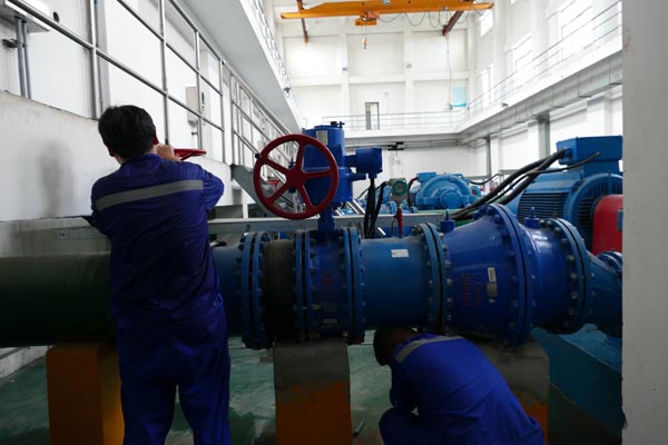 圖4:機電設(shè)備人員正在送水泵房檢修閥門
