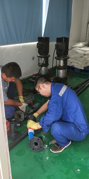 (圖:維修人員正在進(jìn)行管道安裝)