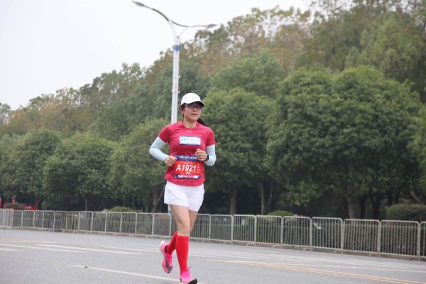 圖:聯(lián)合水務集團人力資源行政總經理楊麗霞在咸馬賽道揮灑汗水