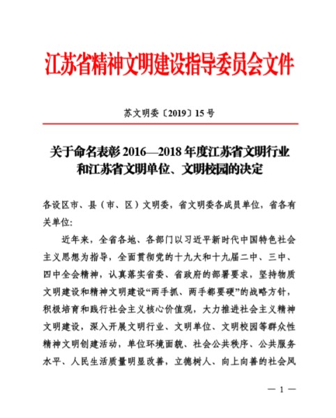 近日,江蘇省精神文明建設(shè)指導(dǎo)委員會(huì)發(fā)文表彰“2016-2018年度江蘇省文明單位”,宿遷銀控自來水有限公司榮膺在列,這是宿遷銀控繼2010-2012年、2013—2015年獲得“江蘇省文明單位”后,第三度蟬聯(lián)此項(xiàng)殊榮,充分展現(xiàn)了公司勇?lián)鐣?huì)責(zé)任、弘揚(yáng)時(shí)代新風(fēng)的良好企業(yè)形象。