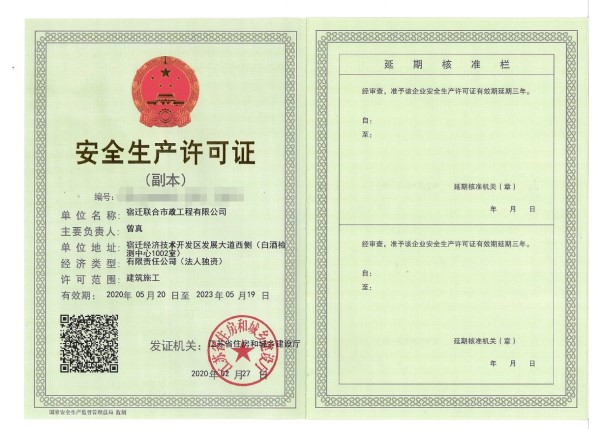 2020年4月初,工程公司進(jìn)行了安全生產(chǎn)許可證延續(xù)換證申報(bào),在通過(guò)宿遷市住建局和江蘇省住建廳有關(guān)部門(mén)審核后,順利通過(guò)了延續(xù)換證審核,并在近日拿到了新一期安全生產(chǎn)許可證。