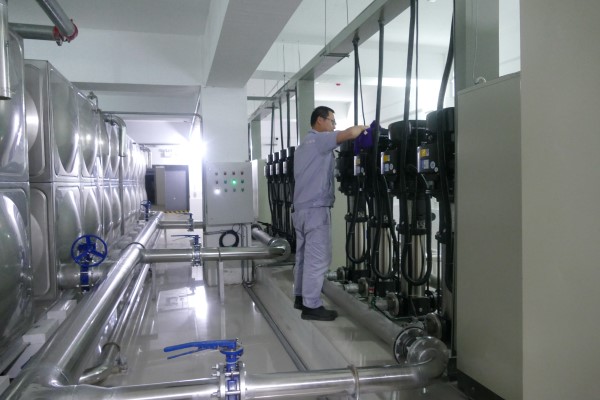 (圖5:二次供水巡檢人員正在進行泵房維護)