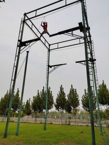 第一個(gè)項(xiàng)目就是高難度挑戰(zhàn)——高空斷橋。設(shè)施高度12米,斷橋間隔1.2米。女學(xué)員們開始很害怕,不敢嘗試。男學(xué)員們自告奮勇,率先挑戰(zhàn),還在空中擺出各種造型,贏得大家的陣陣掌聲。在男學(xué)員們不斷挑戰(zhàn)成功的喜悅氛圍感染下,女學(xué)員們也勇敢地嘗試。挑戰(zhàn)中途,有的女學(xué)員害怕不敢跨越斷橋,下面的男學(xué)員們一起高喊口號(hào),齊聲唱隊(duì)歌,鼓勵(lì)女學(xué)員勇敢前進(jìn)。在大家相互鼓勵(lì)下,最后所有人員全部順利挑戰(zhàn)成功!
