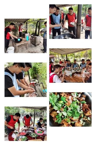 轉(zhuǎn)眼來到午餐時(shí)間,同時(shí)也是訓(xùn)練的一個(gè)隱藏項(xiàng)目。原始土灶,樹枝干草就是工具。男學(xué)員成了炊事班的主力軍。他們分工明確,煎炒烹炸,不一會(huì)兒,色香味俱全的辣子雞、紅燒魚、炒藕片、雜燴湯等各式美味擺滿了大圓桌。大家吃的不亦樂乎!